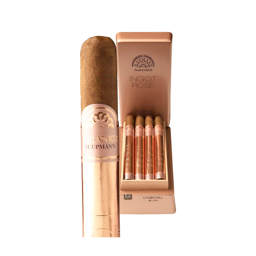 Xì gà The Banker by H Upmann Ingot Rose Churchill là sự bổ sung mới nhất cho hỗn hợp Banker và được dùng để kết hợp với Rosé. Xì gà có dây đeo và giấy gói màu hồng. Hỗn hợp hương vị trung bình này có lớp vỏ bọc Cameroon, chất kết dính Nicaragua và lõi là thuốc lá lá dài Nicaragua, Peru và Dominica đủ tuổi.