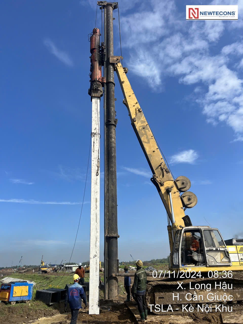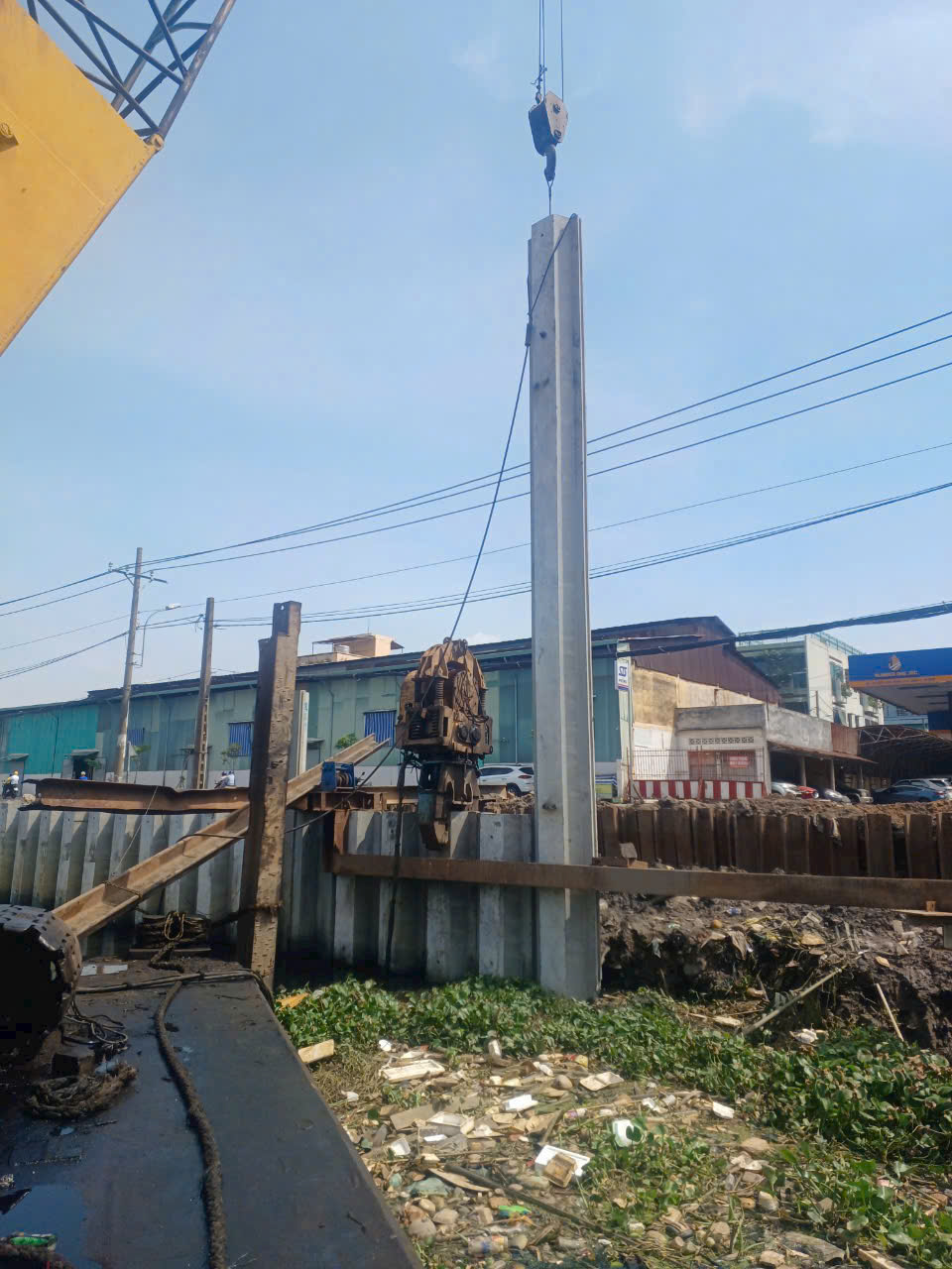 - Ép cọc bê tông bằng hệ thống máy móc hiện đại, đảm bảo độ chính xác cao.