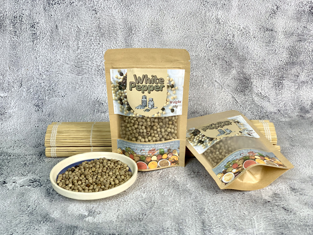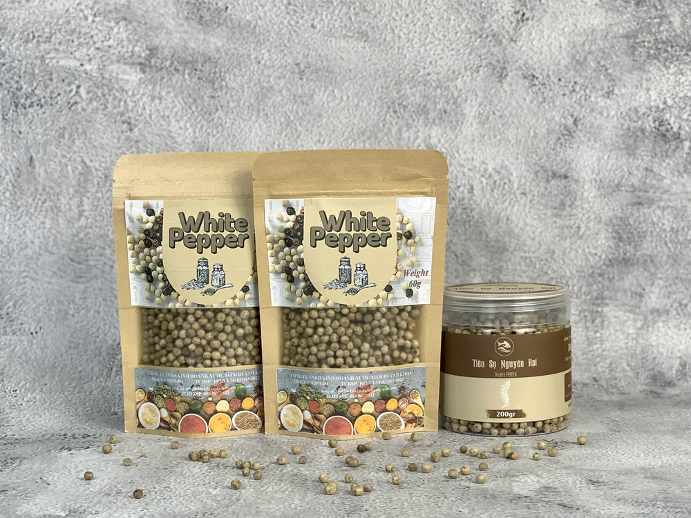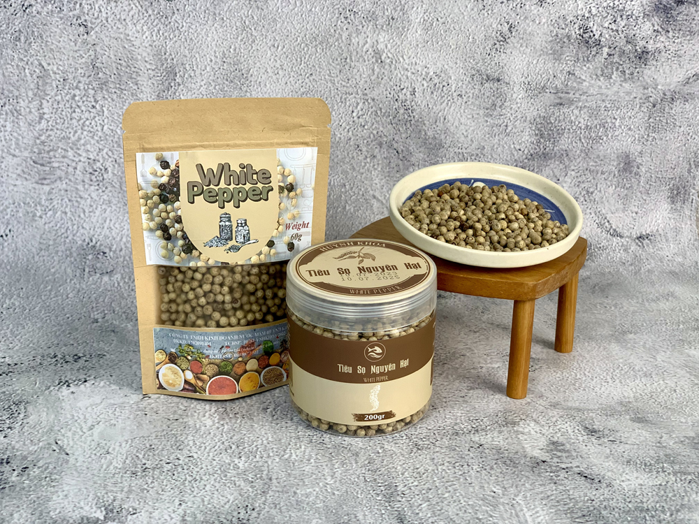 Tiêu sọ Nguyên Hạt hay còn gọi là WHITE PEPPER là một sản phẩm đặc sản của vùng biển đảo ngọc xinh đẹp Phú Quốc. Tiêu sọ được ra đời bằng phương pháp sản xuất đơn giản, mang đến hương vị đặc sắc, thơm ngon cay nồng cho mỗi bữa cơm. Hạt tiêu có vị cay nhè nhẹ vừa phải, phù hợp để chế biến nhiều món ăn khác nhau. Đặc biệt, tiêu sọ nguyên hạt có mùi thơm đặc trưng nhưng không quá nồng, giúp kích thích vị giác khi sử dụng.
