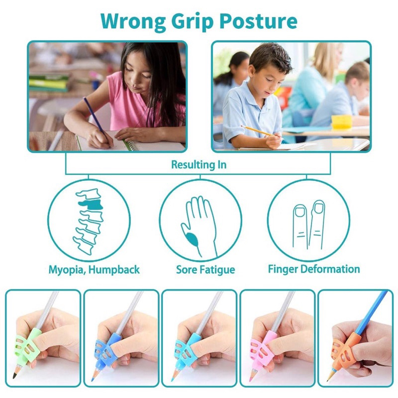 - Kiểu sử dụng: Xỏ cố định vị trí 2 ngón giúp bé không bị chai tay, ngón tay đúng tư thế, đúng góc nghiêng khi viết bài