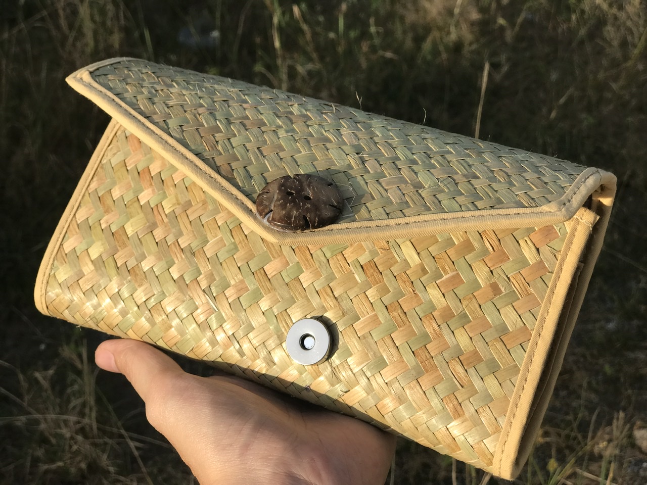 Nếu bạn còn đang lo lắng lựa chọn mẫu ví nào vừa có thể mang được những đồ vật cần thiết và cũng rất thích hợp chụp ảnh để tôn lên được dáng vẻ của ngày Tết cổ truyền. Thì bạn có thể lựa chọn mẫu ví cầm tay làm từ cỏ bàng m này. Ví không chỉ là một sản phẩm thân thiện với thiên nhiên mà còn là một sản phẩm vô cùng phù hợp để mang đi mỗi dịp lễ Tết.