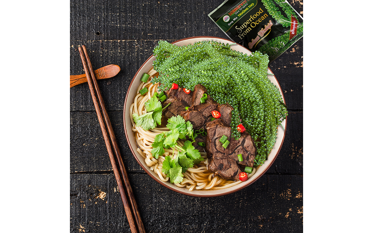- Thành phần: 100% rong nho tươi đã tách nước