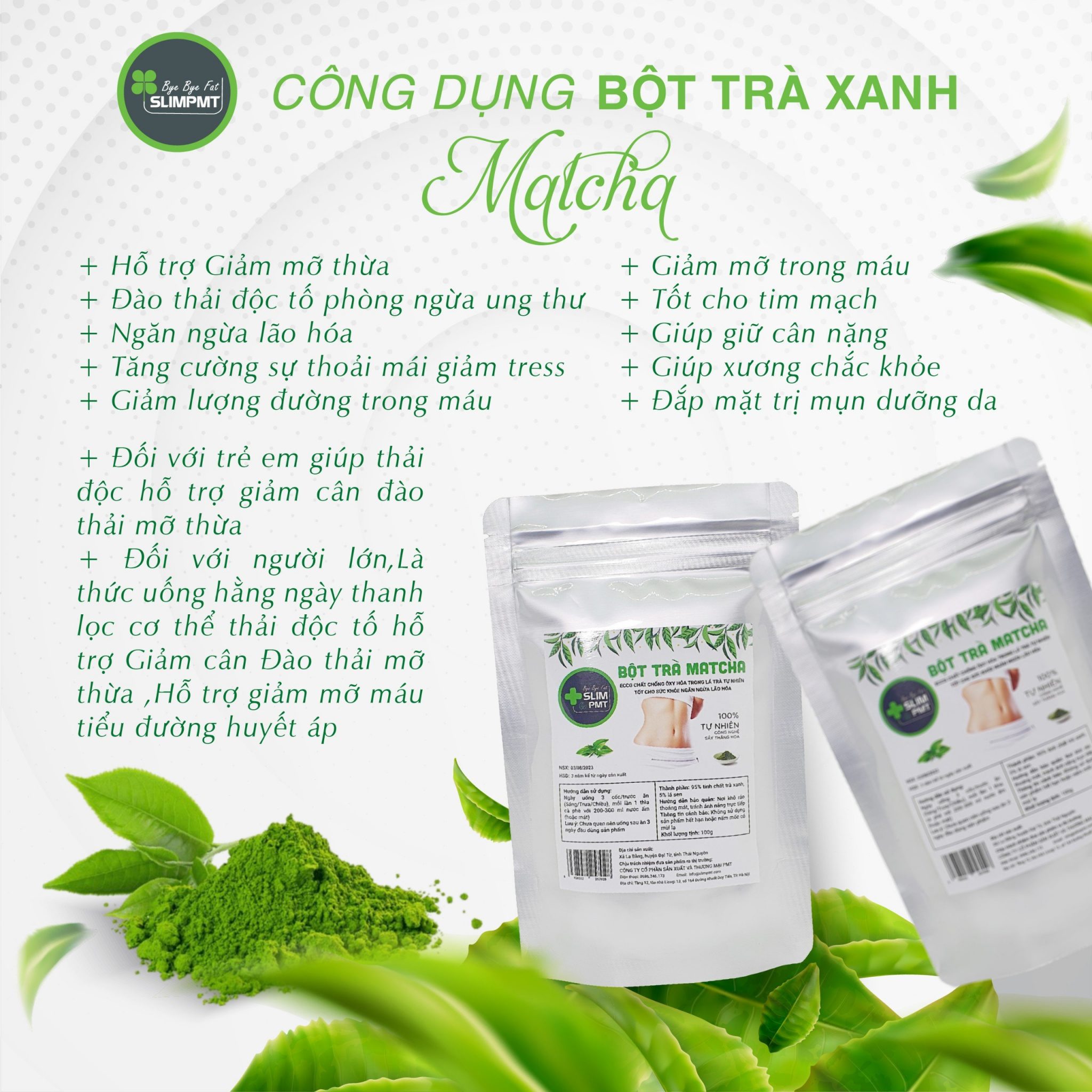 Lá trà sau khi thu hái và rửa sạch bụi bẩn sẽ được khử khuẩn bằng khí ozone, sau đó được sấy bằng công nghệ sấy thăng hoa hiện đại theo công nghệ Nhật Bản. Lá trà được giữ nguyên vẹn các dưỡng chất có trong lá trà, tiếp theo lá trà được nghiền mịn bằng cối đá ở tốc độ chậm cho bột trà mịn và giữ được hoàn toàn các chất có lợi. Cuối cùng bột trà sẽ được đóng nang với các thành phần khác theo công thức được nghiên cứu độc quyền của công ty PMT.