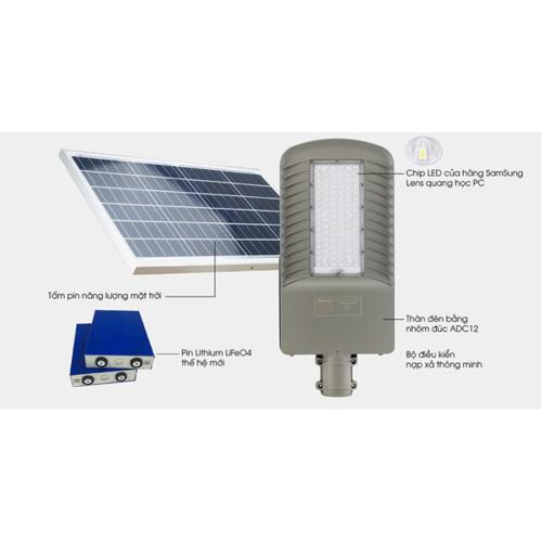 Đèn đường năng lượng mặt trời cao cấp công suất 500W có thể sử dụng để chiếu sáng cho các trục đường chính, đường lớn, hoặc các đường liên thôn xã. Đèn sử dụng chíp LED kết hợp các thấu kính quang học giúp tăng hiệu quả chiếu sáng. Bộ điều khiển thông minh, tăng tối đa khả năng nạp năng lượng và phát sáng.