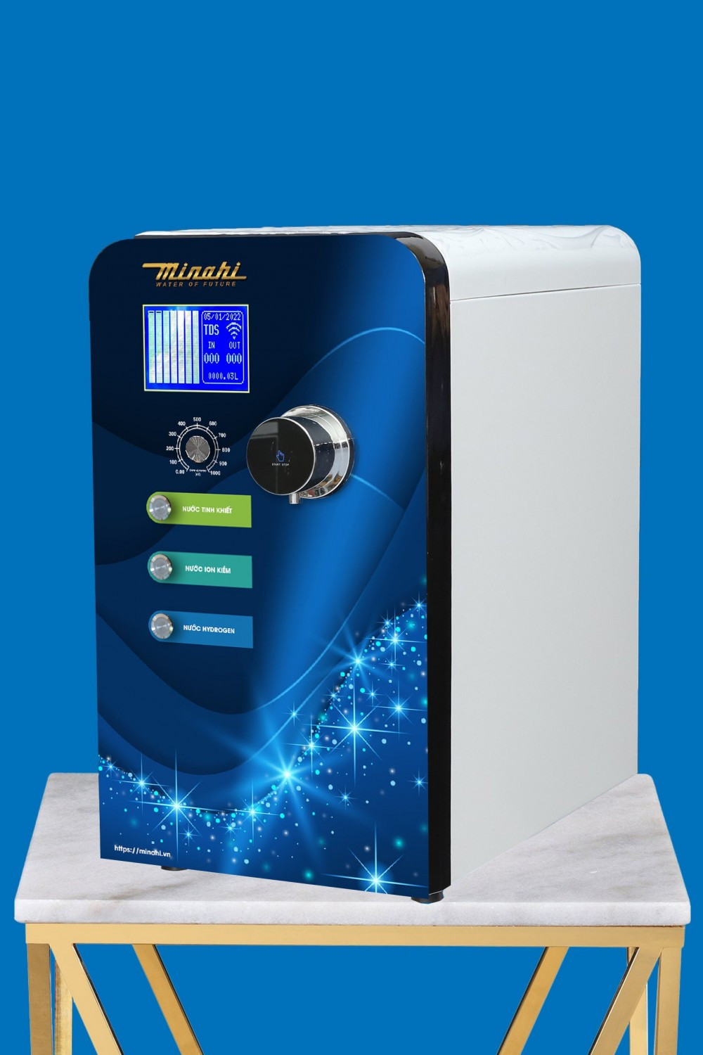 Sản phẩm máy lọc nước tạo ion kiềm giàu hydrogen Minahi với linh kiện lõi lọc được nhập khẩu 100% từ Hàn Quốc và Đài Loan được sản xuất và lắp ráp tại Việt Nam. Tích hợp công nghệ hiện đại 4.0 vào sản phẩm giúp khách hàng quản lý uược chất lượng nước uống hàng ngày và thời gian thay lõi lọc chính xác và bảo đảm khách hàng luôn sử dụng nước uống là nước sạch và có lợi cho sức khoẻ. Sản phẩm đem đến cho khách hàng nước ion kiềm giàu hydrogen chất lượng, cần thiết cho cuộc sống hàng ngày của mọi gia đình. Với 3 tính năng tạo nước cơ bản của máy giúp đáp ứng được nhu cầu cần thiết của gia đình bạn.
