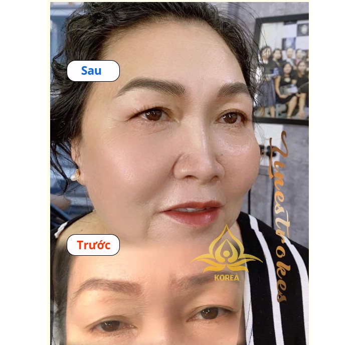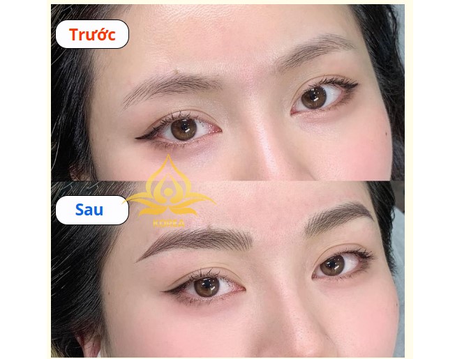 Mày thưa, nhạt màu: Trước - sau khi đi sợi Hairstroke