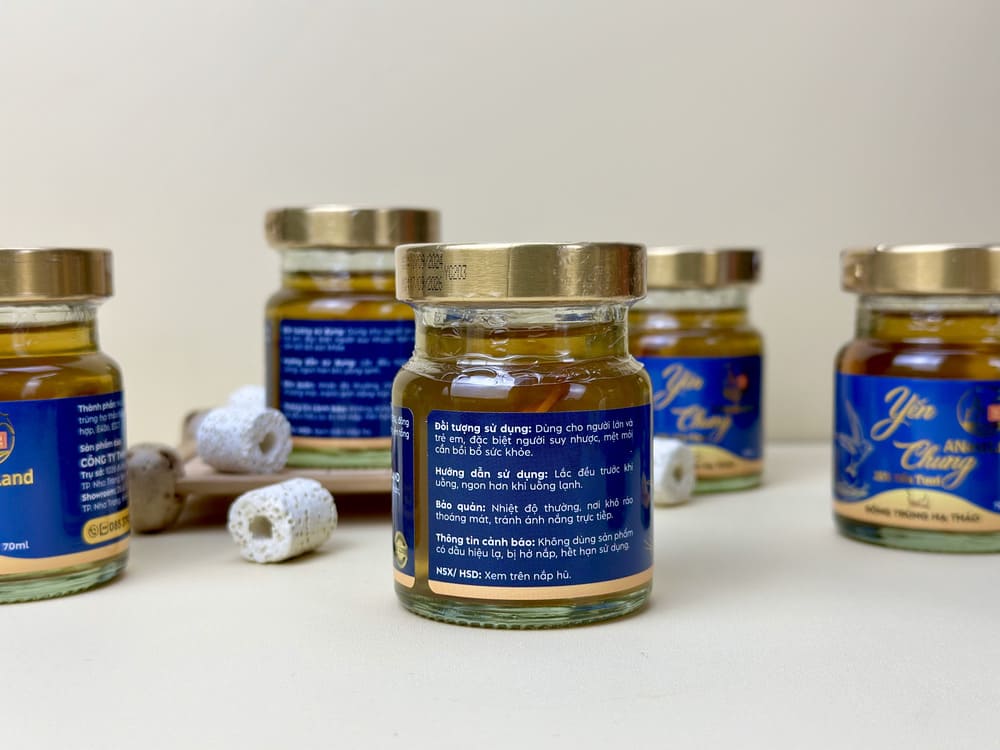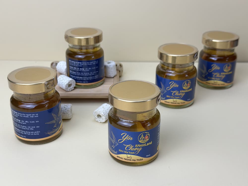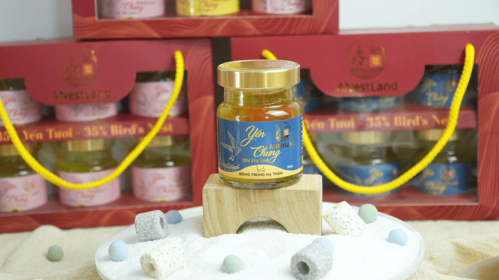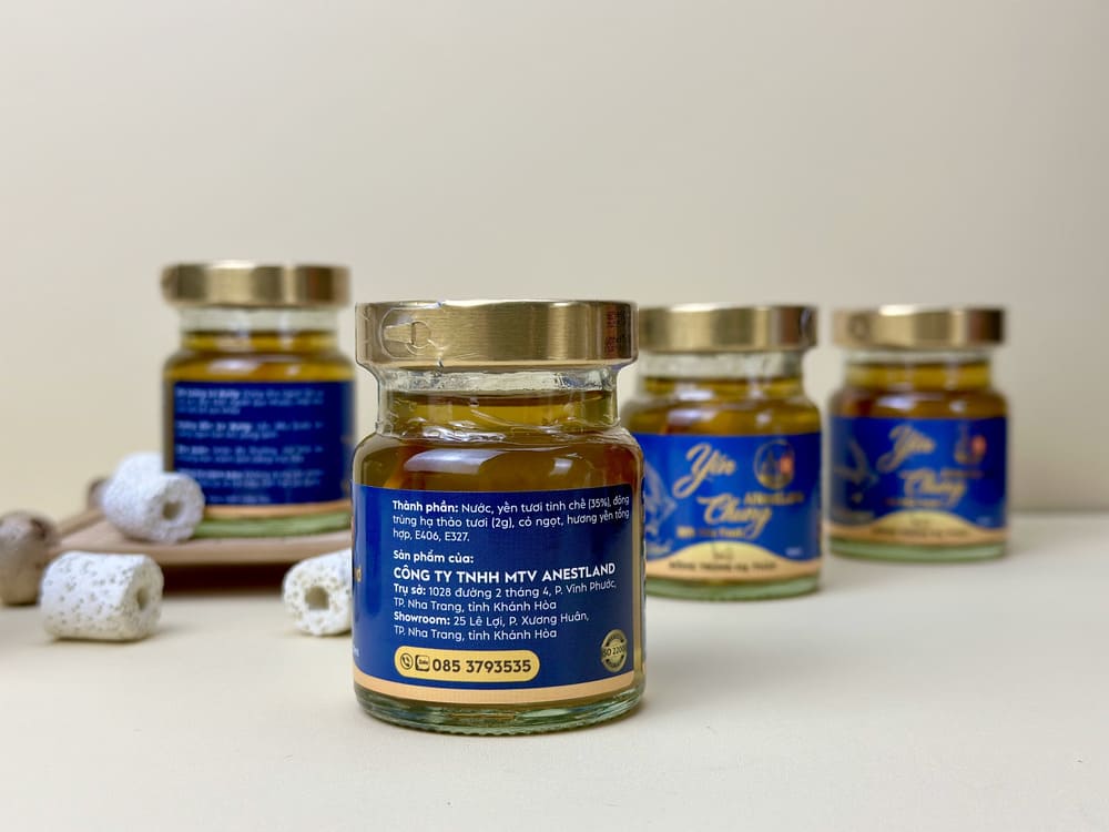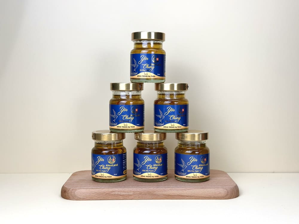 Set yến bao gồm 6 hũ yến chưng Đông Trùng Hạ Thảo của ANestLand