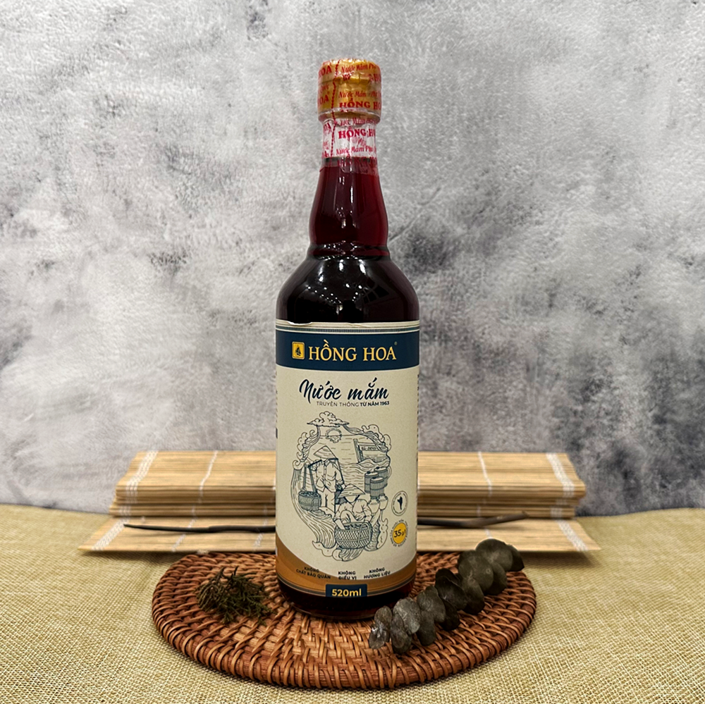 Nước Mắm Nhĩ Cá Cơm Truyền Thống Phú Quốc Hồng Hoa 35 Độ Đạm - Chai Thủy Tinh 520ml
