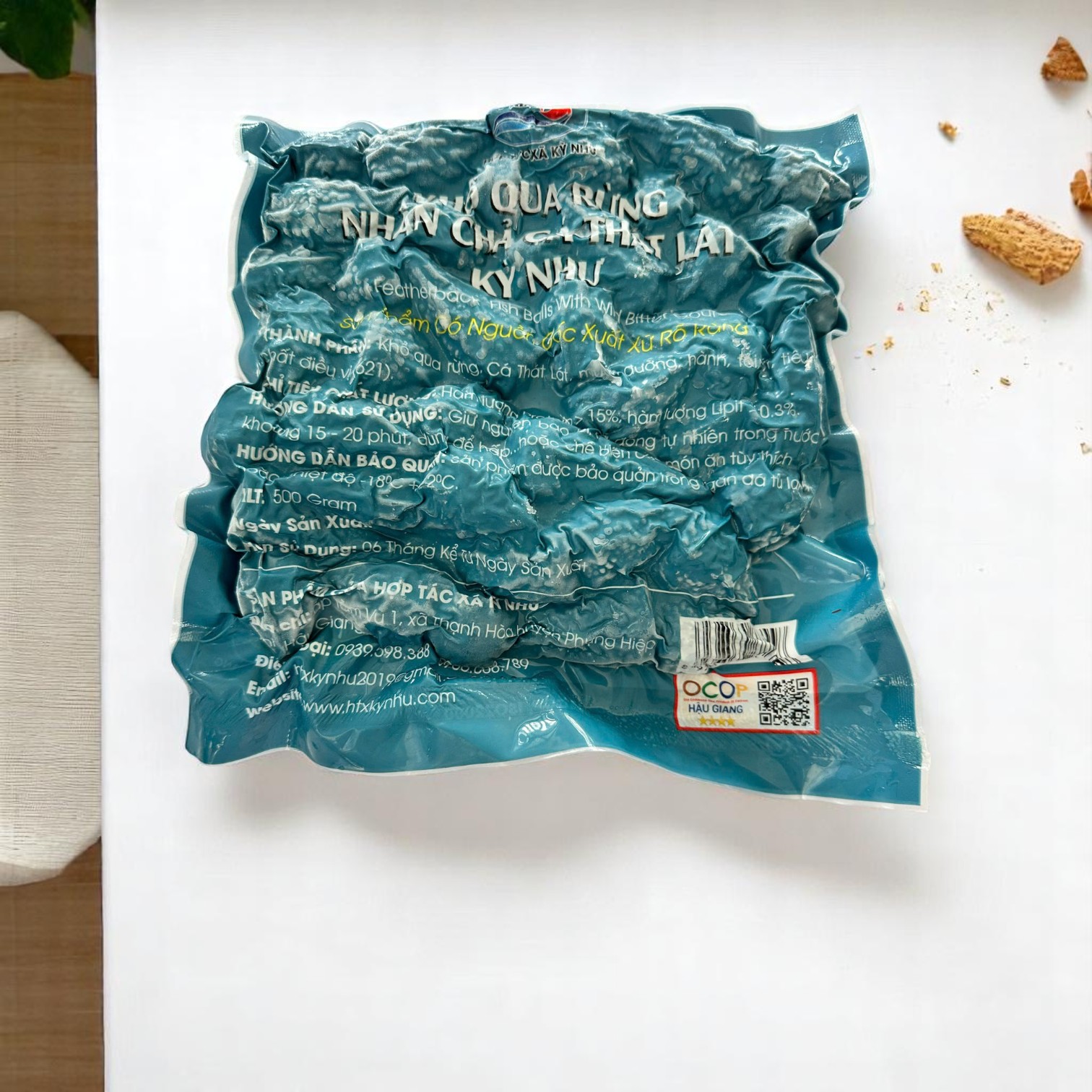 Sản phẩm là sự kết hợp độc đáo giữa khổ qua rừng – loại rau rừng nổi tiếng với công dụng thanh nhiệt, mát gan – và chả cá thát lát Kỳ Như đặc sản nổi bật của Hậu Giang, được làm từ thịt cá tươi quết dai, không chất bảo quản, không hàn the.