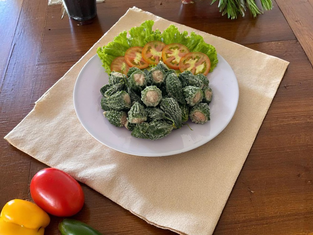 Mỗi trái khổ qua rừng được lựa chọn kỹ lưỡng, nhồi đầy nhân chả cá thơm ngon, tiện lợi khi chế biến: nấu canh, hấp, hầm hoặc nấu lẩu đều ngon.