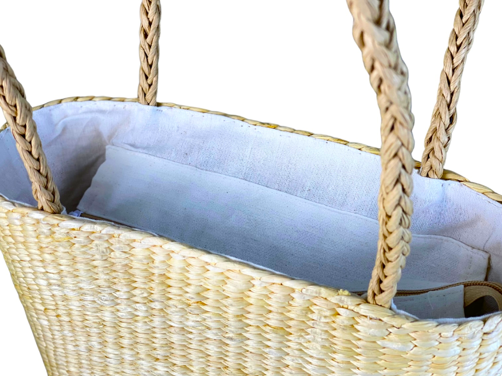 Với chất liệu quai đeo bằng giấy dóc được đan chắc chắn, bền bỉ cùng túi vải được lót bên trong giỏ để hạn chế sự ma sát gây trầy xước các vật dụng bên trong giỏ của bạn. Túi vải cũng có khóa kéo để tránh các vật dụng đựng bên trong giỏ bị rơi ra ngoài, thiết kế khóa kéo này cũng tạo nên sự tiện lợi, nhanh chóng và linh động trong sinh hoạt thường ngày.
