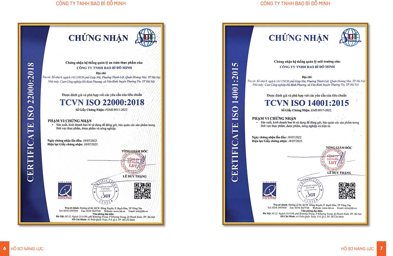 Với nguyên vật liệu đầu vào đạt chất lượng cao, sản xuất trên dây chuyền máy móc trang thiết bị hiện đại, kỹ thuật công nghệ mới luôn được cập nhật, được điều khiển và vận hành dưới đội ngũ kỹ thuật chuyên nghiệp, nhân công tay nghề cao. Công ty chúng tôi đã sản xuất và cung cấp cho thị trường nhiều loại sản phẩm bao bì khác biệt với chất lượng tốt. Để đáp ứng các yêu cầu của khách hàng về chất lượng sản phẩm Bao Bì, Công Ty đã xây dựng và áp dụng hệ thống Quản lý Chất lượng ISO 22000:2018.