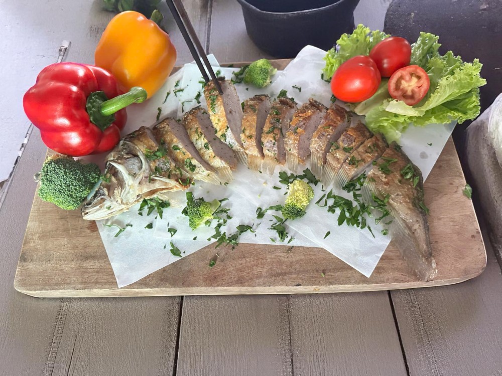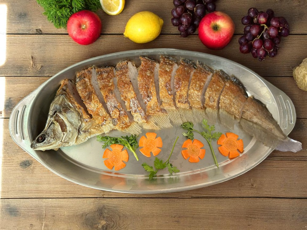 ướp cá với tiêu, tỏi, nước mắm, chiên vàng giòn.