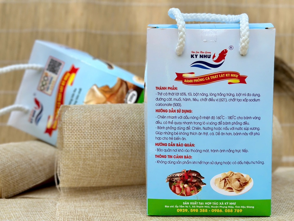 Bánh Phồng Cá Thát Lát Kỳ Như là đặc sản nổi tiếng của Hậu Giang, đạt danh hiệu OCOP 4 sao, không chứa hàn the hay hóa chất độc hại. Được chế biến từ cá thát lát tươi ngon và các nguyên liệu tự nhiên, sản phẩm mang đến hương vị thơm ngon, giòn rụm, là lựa chọn hoàn hảo cho bữa ăn nhẹ hoặc món ăn bổ dưỡng cho trẻ em.
