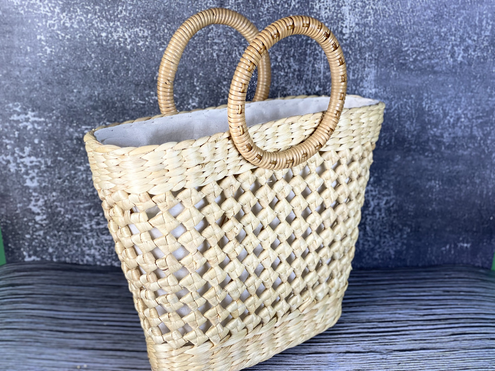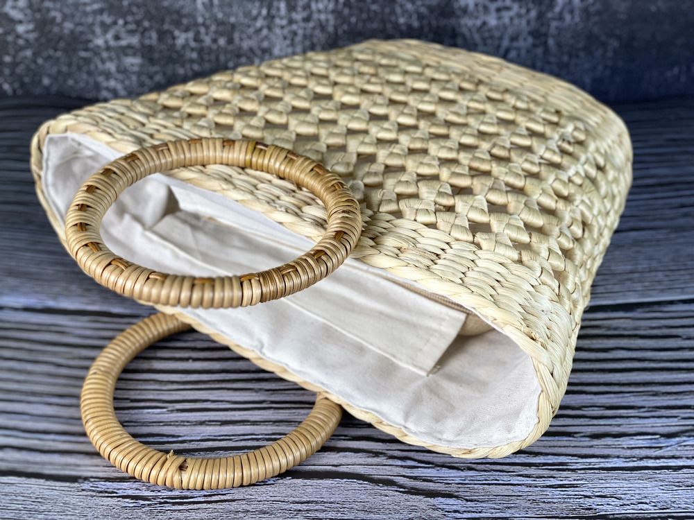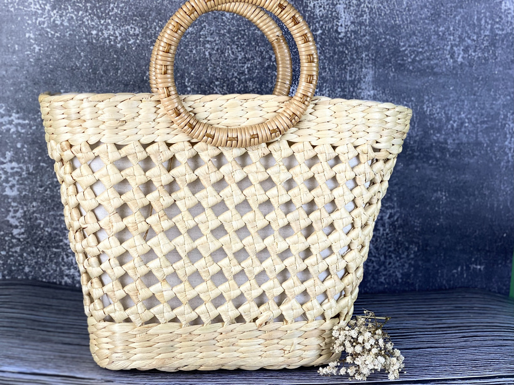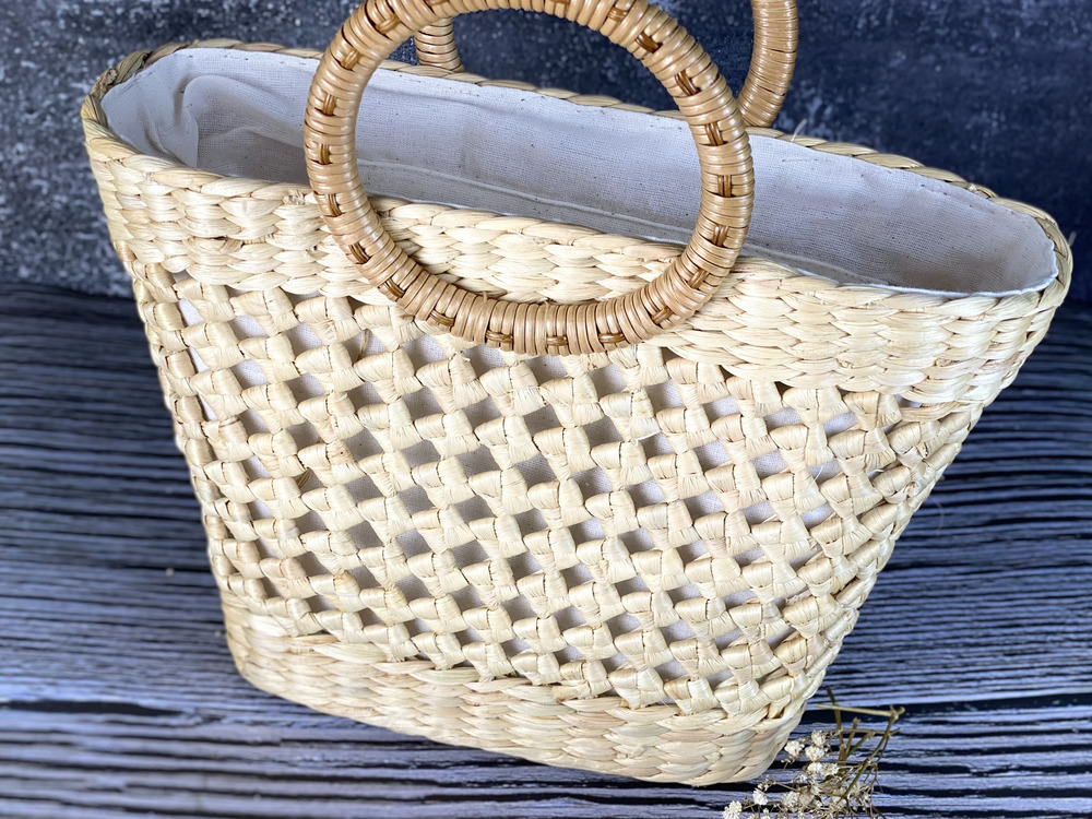 Giỏ trống quai ngọc là sản phẩm thủ công mỹ nghệ được làm từ lục bình tự nhiên bởi các nghệ nhân dày dặn tay nghề với thiết kế thanh lịch sang trọng và tinh tế