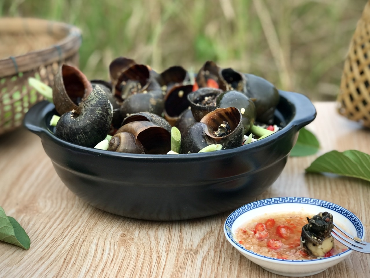 Ốc gác bếp là đặc sản của vùng Đồng Tháp, việc lựa chọn những con ốc chất lượng, to, bự, không bị bể, mang đi làm sạch rồi để vào giỏ tre....