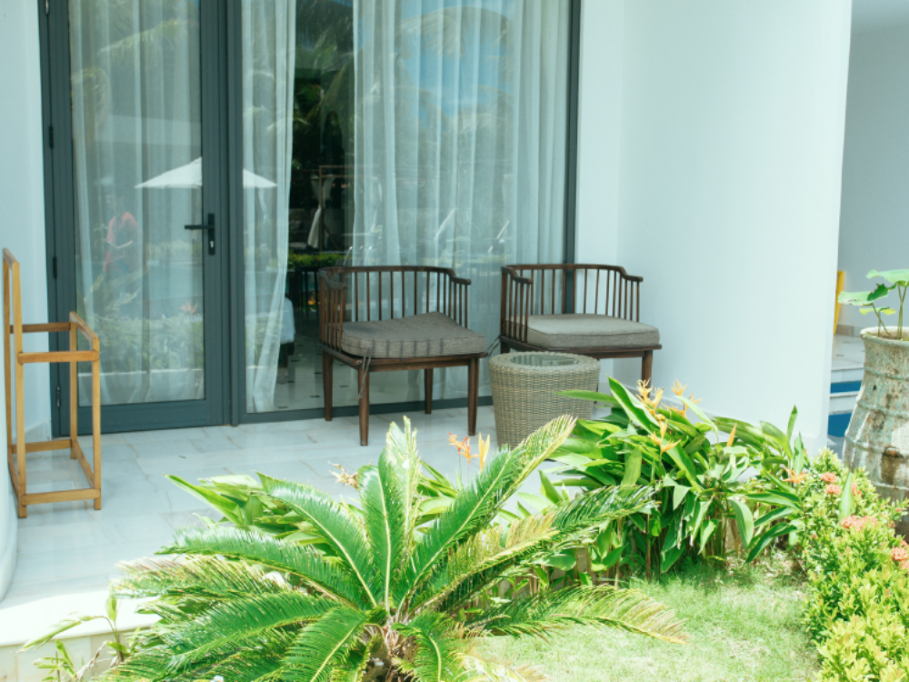 Phòng Deluxe hướng vườn có tầm nhìn ra không gian xanh mát của núi Dương Tơ hoặc hồ bơi tại tại The Palmy Phú Quốc được thiết kế theo phong cách tối giản, thanh lịch và tao nhã, tạo cho Quý khách một không gian yên bình và thư thái. Với nội thất cao cấp hài hòa và trang thiết bị hiện đại theo tiêu chuẩn 4* .