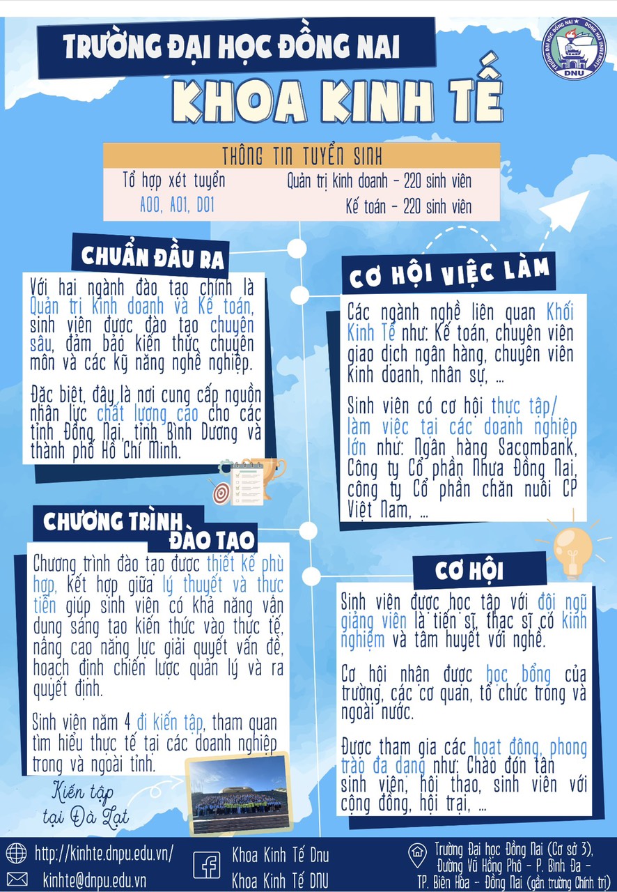 Thông báo tuyển sinh năm 2022 của khoa kinh tế