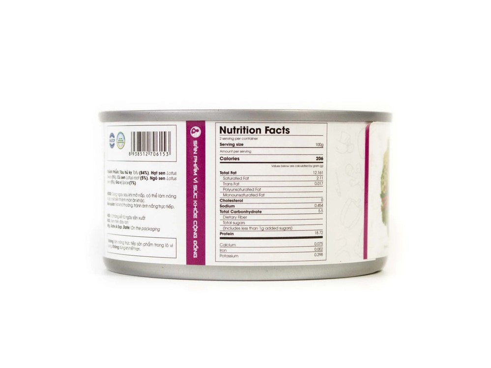 - Thành phần: Tàu hủ ky 84%, hạt sen 5%, củ sen 5%, ngó sen 5%, gia vị 1%