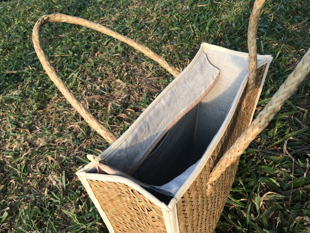 Giỏ làm từ 100% nguyên liệu tự nhiên là lục bình phơi khô. Có nhiều kích thước tùy vào nhu cầu sử dụng của mọi người, bên trong giỏ có lót vải và khoá kéo an toàn để đồ cá nhân và vật dụng , quai cầm chắc chắn thuận tiện.