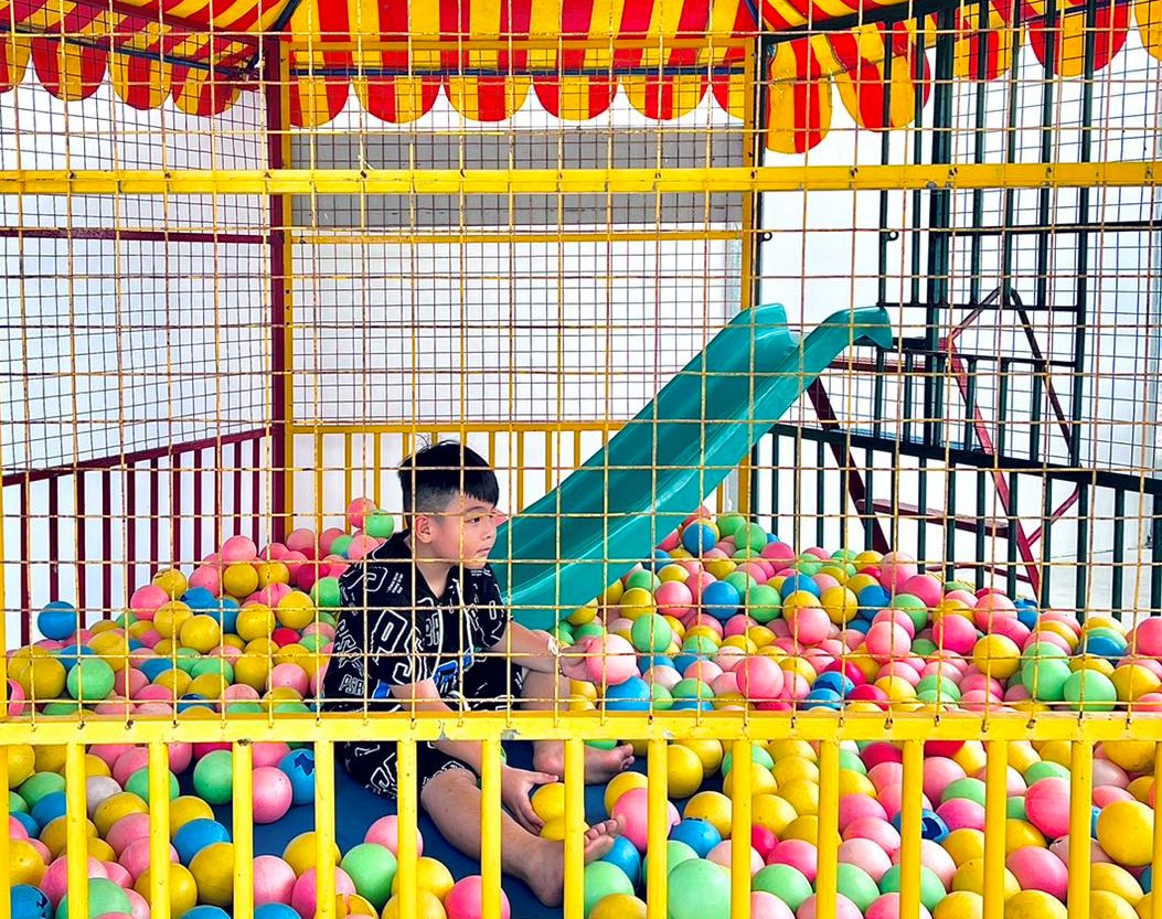 - Khu nhà banh, cầu trượt dành riêng cho các bé với nhiều màu sắc bắt mắt và vui nhộn.