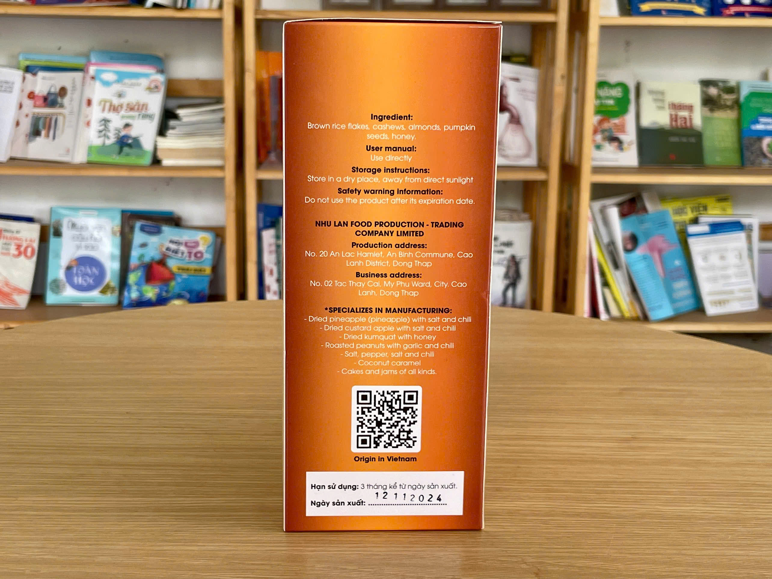 - Thành phần: Cốm gạo lứt, hạt điều, hạnh nhân, htaj bí, mật ong