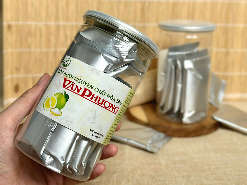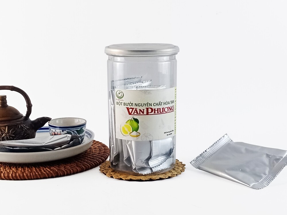 Bột bưởi nguyên chất hòa tan có chứa nhiều chất xơ, vitamin C, chất chống oxy hóa và các hoạt chất khác có lợi cho cơ thể là một sản phẩm an toàn, thiên nhiên và hiệu quả, được nhiều người tin dùng.