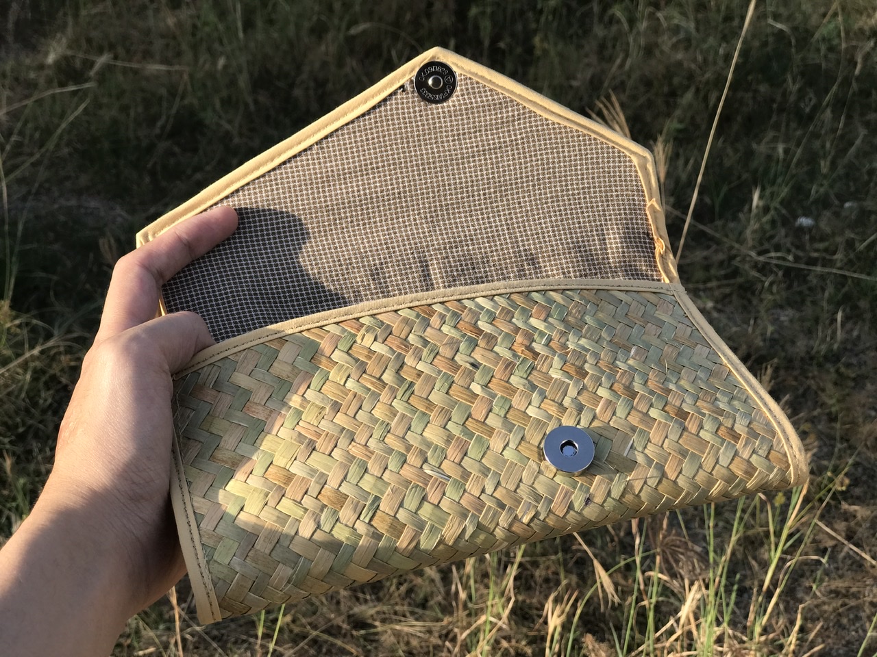 Nếu bạn còn đang lo lắng lựa chọn mẫu ví nào vừa có thể mang được những đồ vật cần thiết và cũng rất thích hợp chụp ảnh để tôn lên được dáng vẻ của ngày Tết cổ truyền. Thì bạn có thể lựa chọn mẫu ví cầm tay làm từ cỏ bàng m này. Ví không chỉ là một sản phẩm thân thiện với thiên nhiên mà còn là một sản phẩm vô cùng phù hợp để mang đi mỗi dịp lễ Tết.