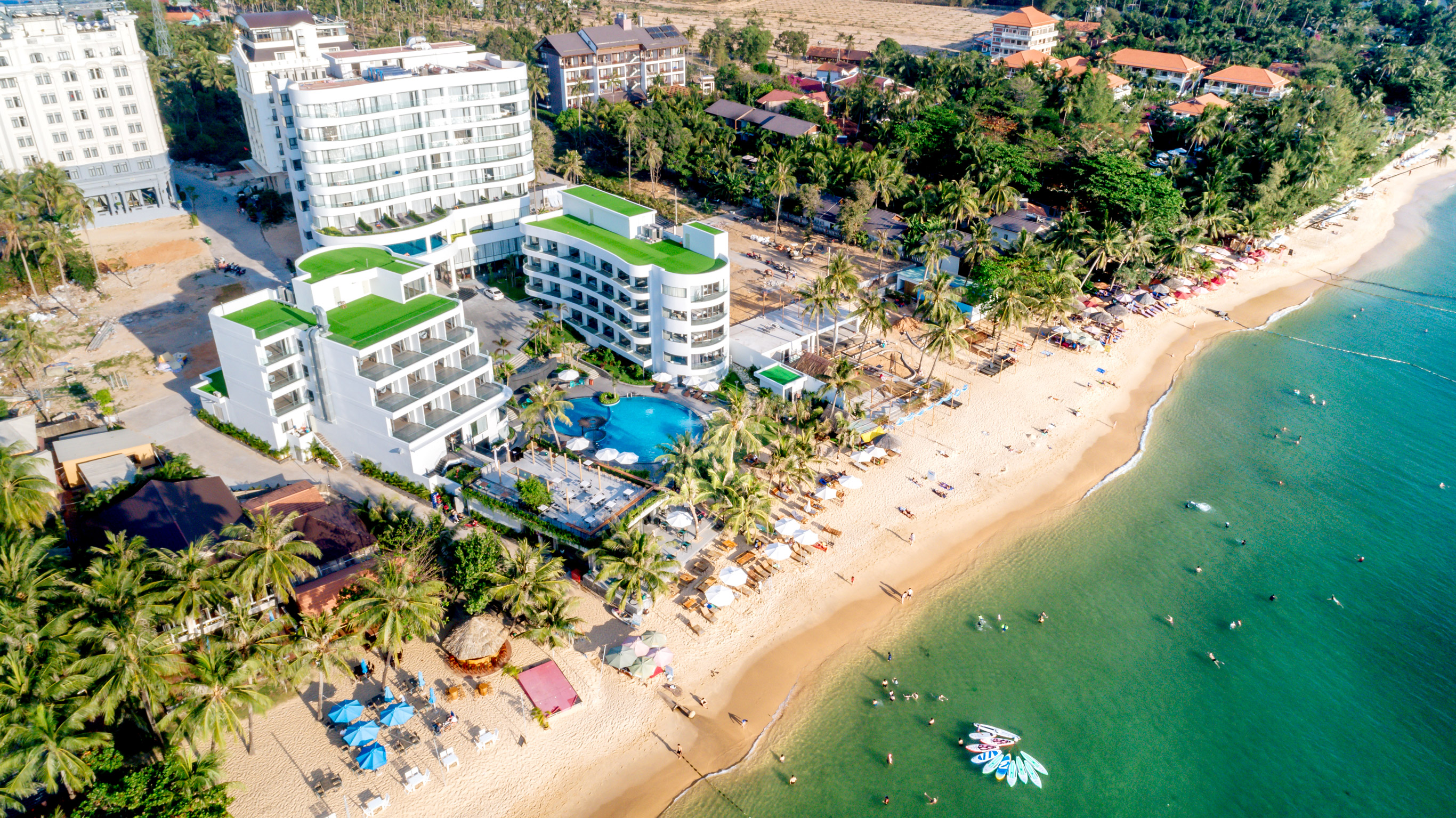 Tại đây, Quý khách được phục vụ bữa sáng phong phú Á – Âu, internet miễn phí toàn khu, thư giãn tại hai hồ bơi vô cực hướng biển tuyệt đẹp, cùng các dịch vụ tiện ích như phòng nghỉ chuyên nghiệp, bãi đậu xe và đưa đón sân bay thuận tiện.
