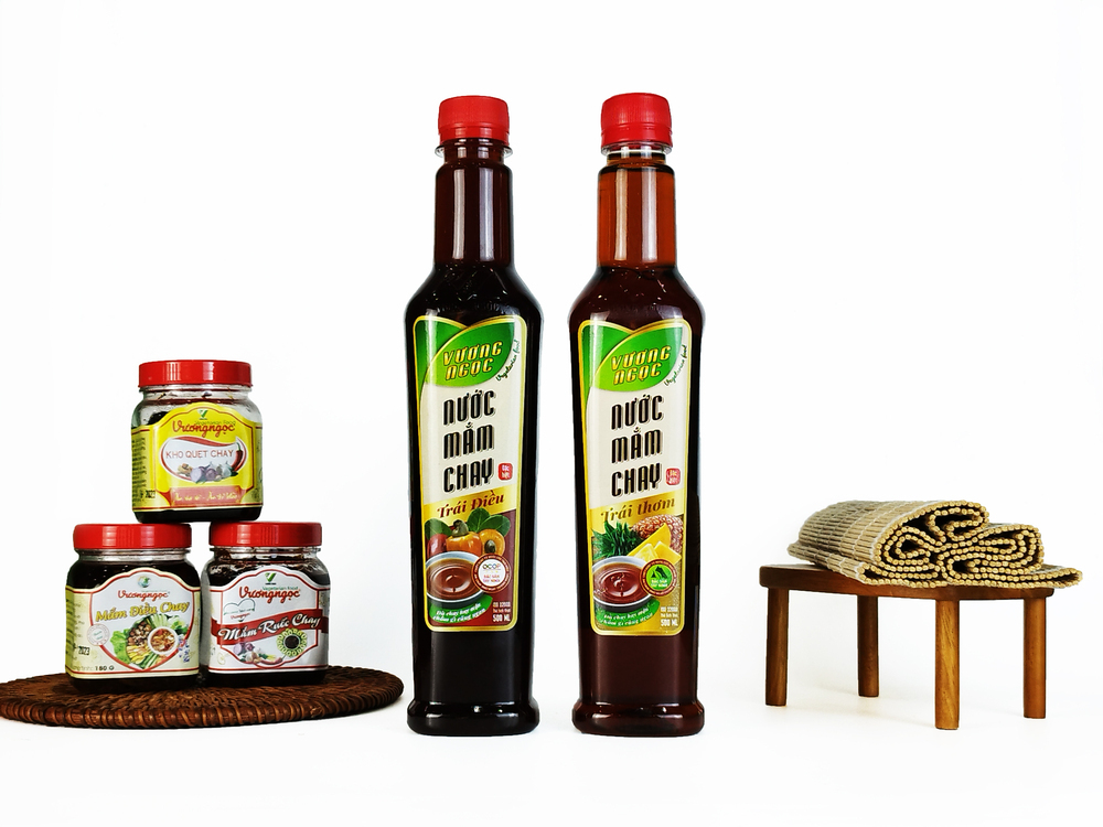 Trong ẩm thực của người Việt nói riêng và thế giới nói chung, các loại gia vị là thành phần không thể thiếu để kích thích vị giác và cũng đồng thời làm tăng độ thơm ngon của các món ăn lên nhiều lần. Nắm được nhu cầu về các loại gia vị đó của người tiêu dùng Vương Ngọc Vegan đã cho nghiên cứu và sản xuất Nước mắm chay trái điều, một gia vị đi kèm trong các bữa ăn của người Việt phù hợp với mọi chế độ ăn chay, mặn của đa số gia đình.