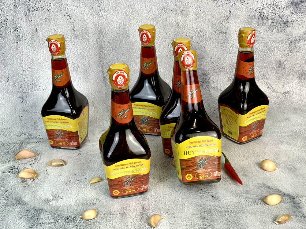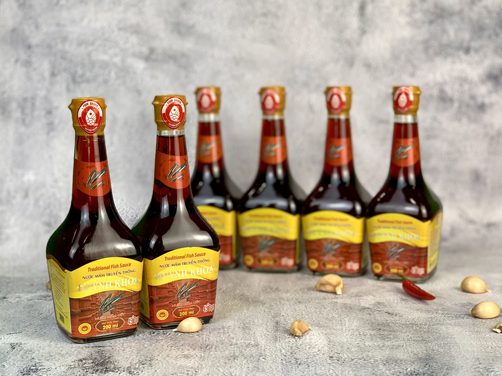 Nước Mắm Cốt Nhĩ Truyền Thống CDĐL Phú Quốc Huỳnh Khoa 45 độ đạm (Nguyên Chất) - Chai 200 ml - Hộp 6 Chai