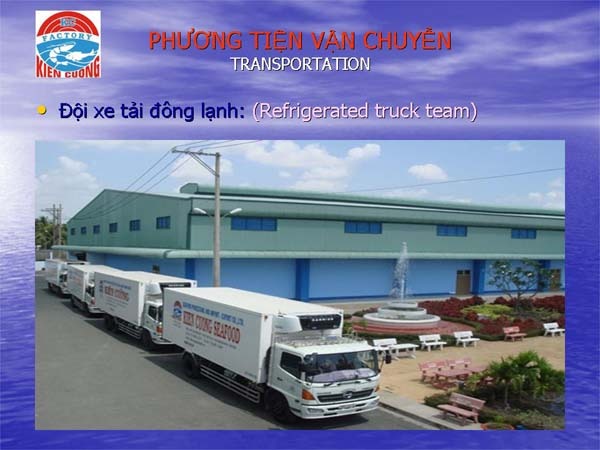 Công ty được xây dựng trên diện tích 1400 m2 với đầy đủ các hạng mục phục vụ chủ sản xuất kinh doanh, vốn đầu tư bạn đầu là 70 tỷ. Hiện nay số lượng công nhân đang làm việc tại công ty là trên 500 người với công suất năng lực sản xuất là 10.000 tấn/năm. Với sản phẩm chủ lực của công ty là “Tôm sú và Mực” đồng lạnh, thị trường chủ yêu là Nga, Nhật vả EU...