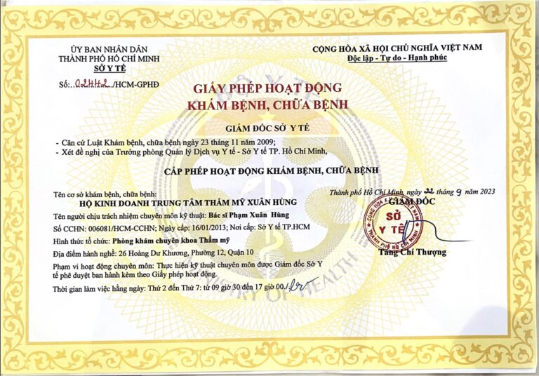 Giấy phép hoạt động khám chữa bệnh được sở y tế tp HCM cấp phép