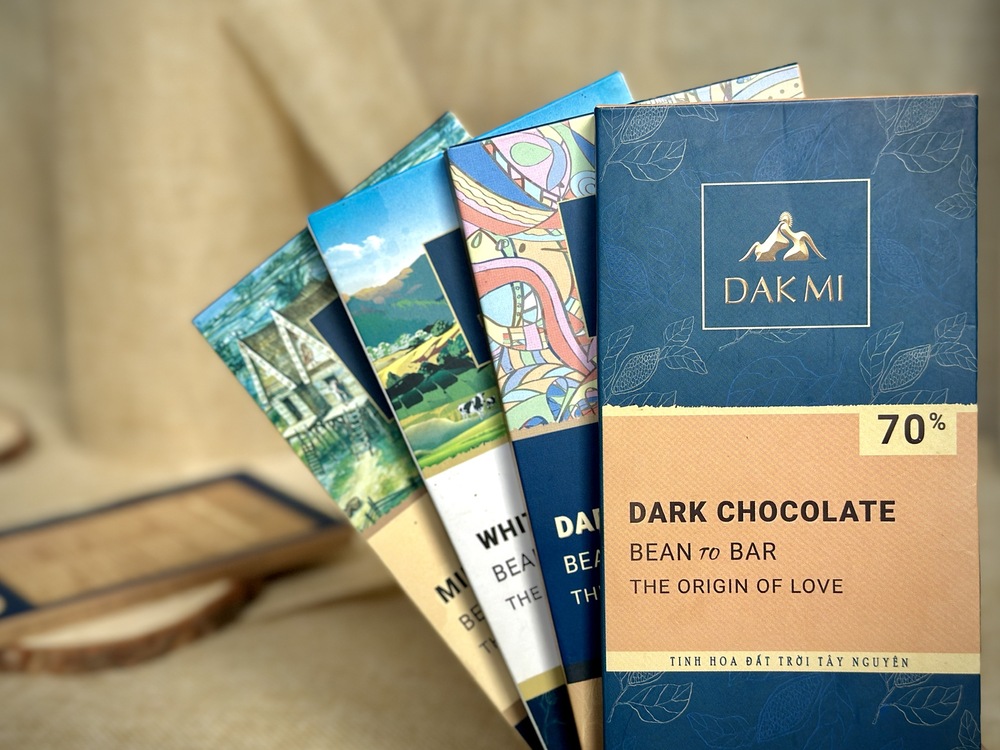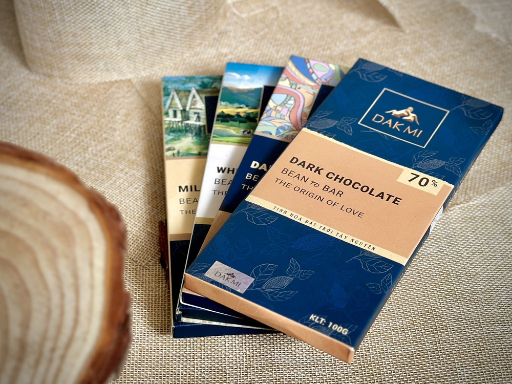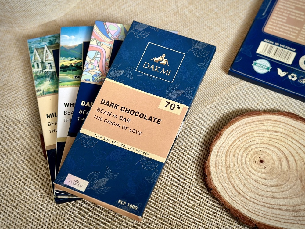 Dark Chocolate là một thương hiệu socola của công ty Damifarm, chuyên sản xuất các sản phẩm từ cacao Dakmil, một vùng nguyên liệu cacao nổi tiếng ở Việt Nam. Socola DAK MI có nhiều loại nhân khác nhau, như hạnh nhân, đậu phộng, cà phê, v.v. Dark Chocolate có hương vị thơm ngon, béo ngậy và giàu dinh dưỡng. Đây là một món quà tuyệt vời cho bạn bè và người thân trong những dịp đặc biệt.