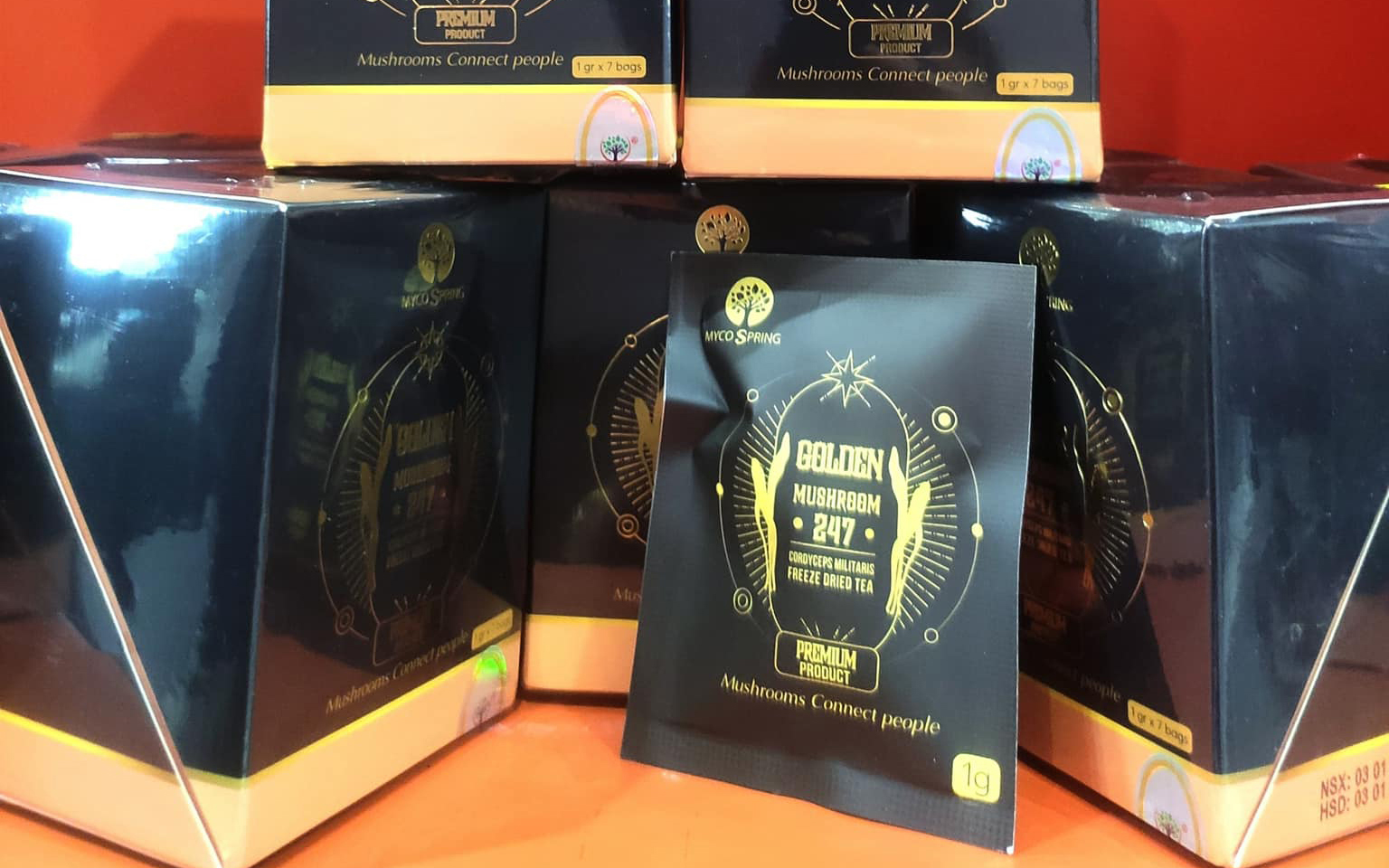 - Tên sản phẩm: Trà gói Đông Trùng Hạ Thảo Thượng Hạng - Golden Mushroom 247