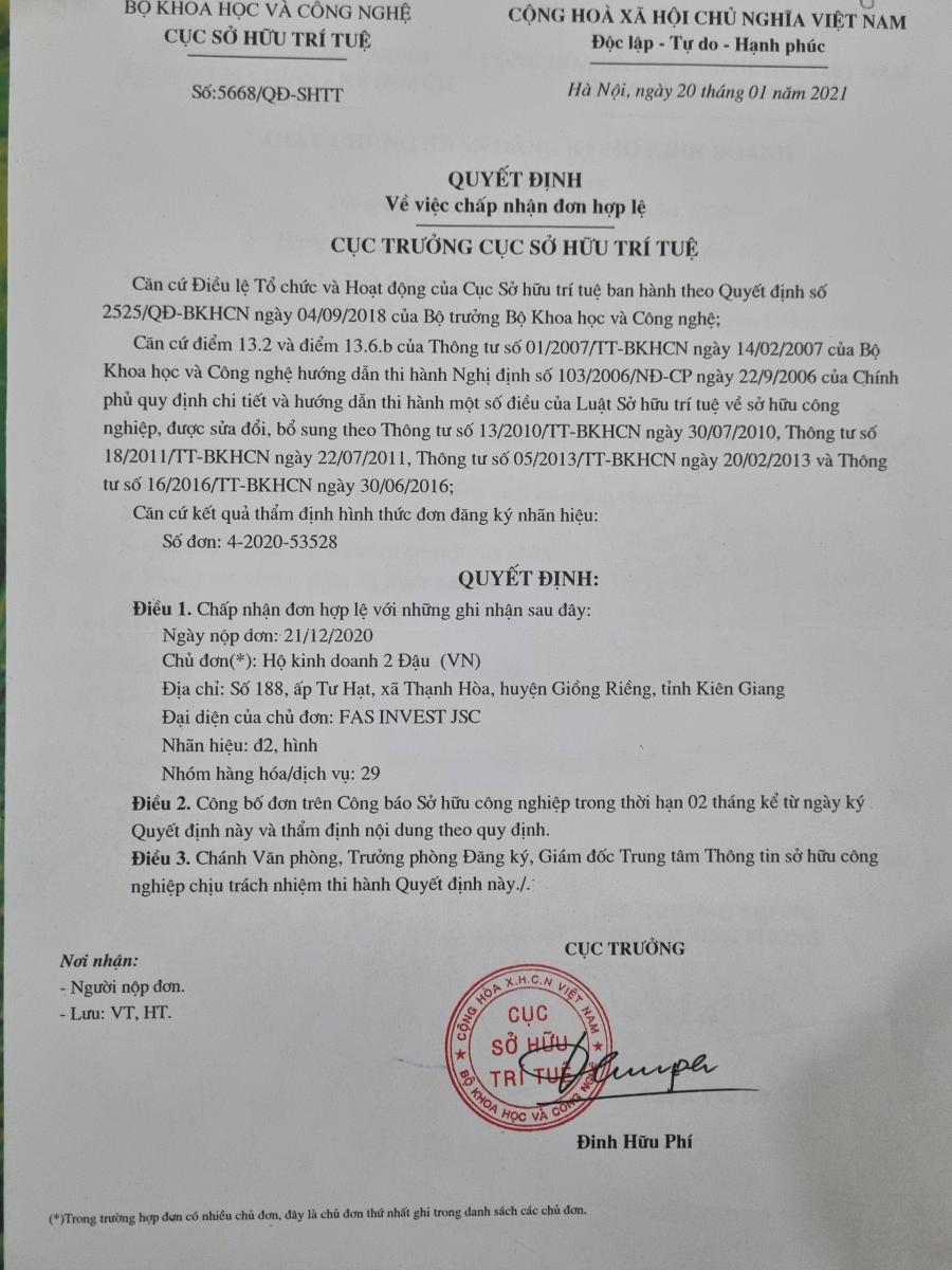 Trong năm 2021, sản phẩm "Trà mãng cầu xiêm 2 Đậu" đã được chọn là Sản phẩm Công nghiệp Nông thôn Tiêu biểu cấp Huyện, và đạt chứng nhận sản phẩm OCOP 3 sao cấp tỉnh.