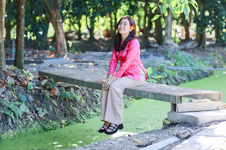 Vườn cũng có chuẩn bị nhiều trang phục áo bà ba cho thuê để bạn lựa chọn, cùng hóa thân 1 ngày làm cô thôn nữ miền Tây bạn nhé.