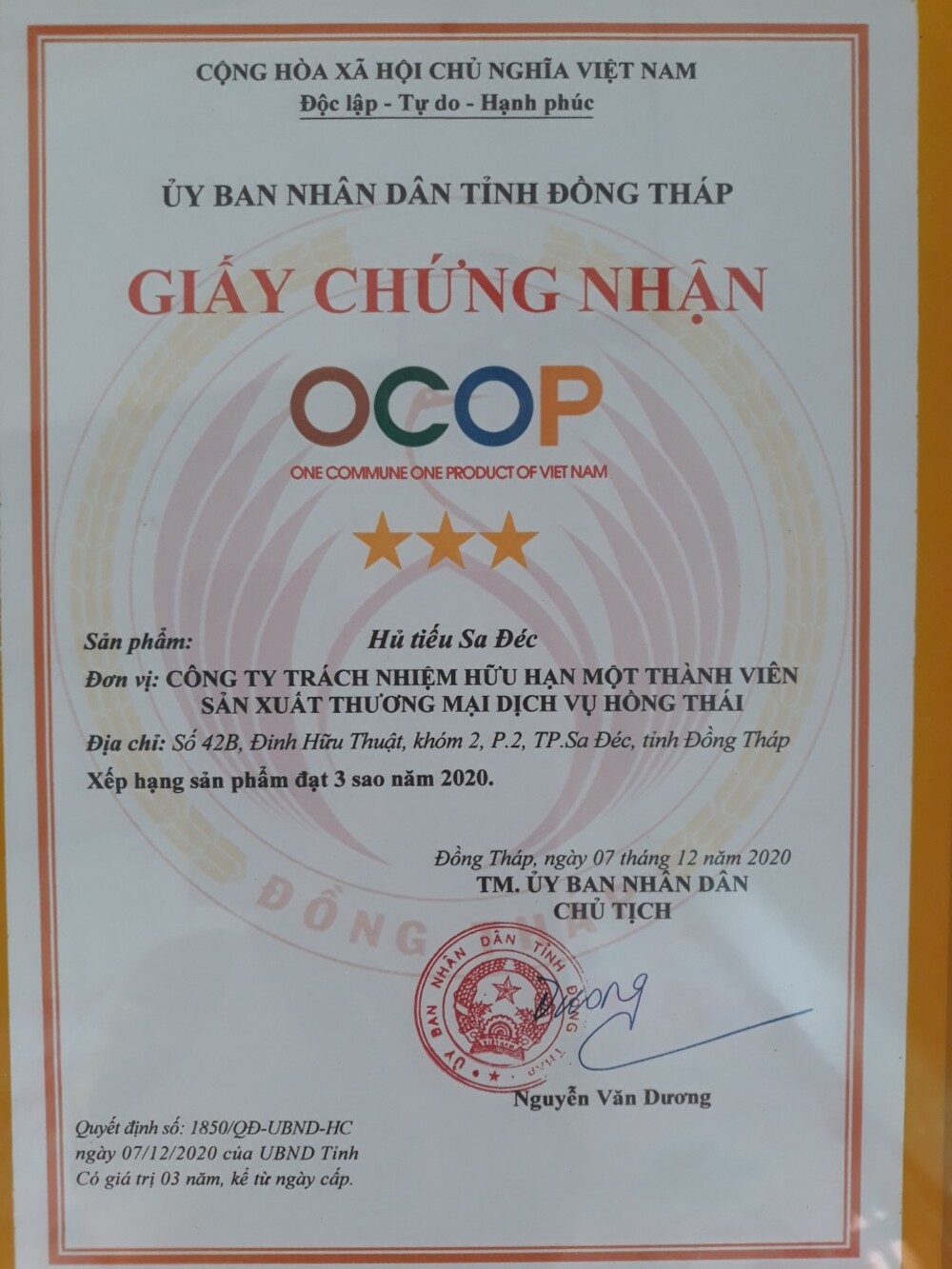 Về mặt sản lượng, năm 2015 Hồng Thái đạt con số 500 tấn sản phẩm/năm và đến hết 2017 thì con số trung bình đạt trên 1000 tấn/năm. Không chỉ vậy, 2 sản phẩm tiêu biểu là hủ tiếu và bánh phở bột lọc Sa Đéc đã được xuất khẩu sang nhiều quốc gia trên thế giới như: Trung Quốc, Đài Loan, Hàn Quốc, Úc, Campuchia, Lào…và kèm theo đó là sự phát triển dây chuyền sản xuất với khả năng cung ứng lên đến 5000 tấn/năm trở lên.