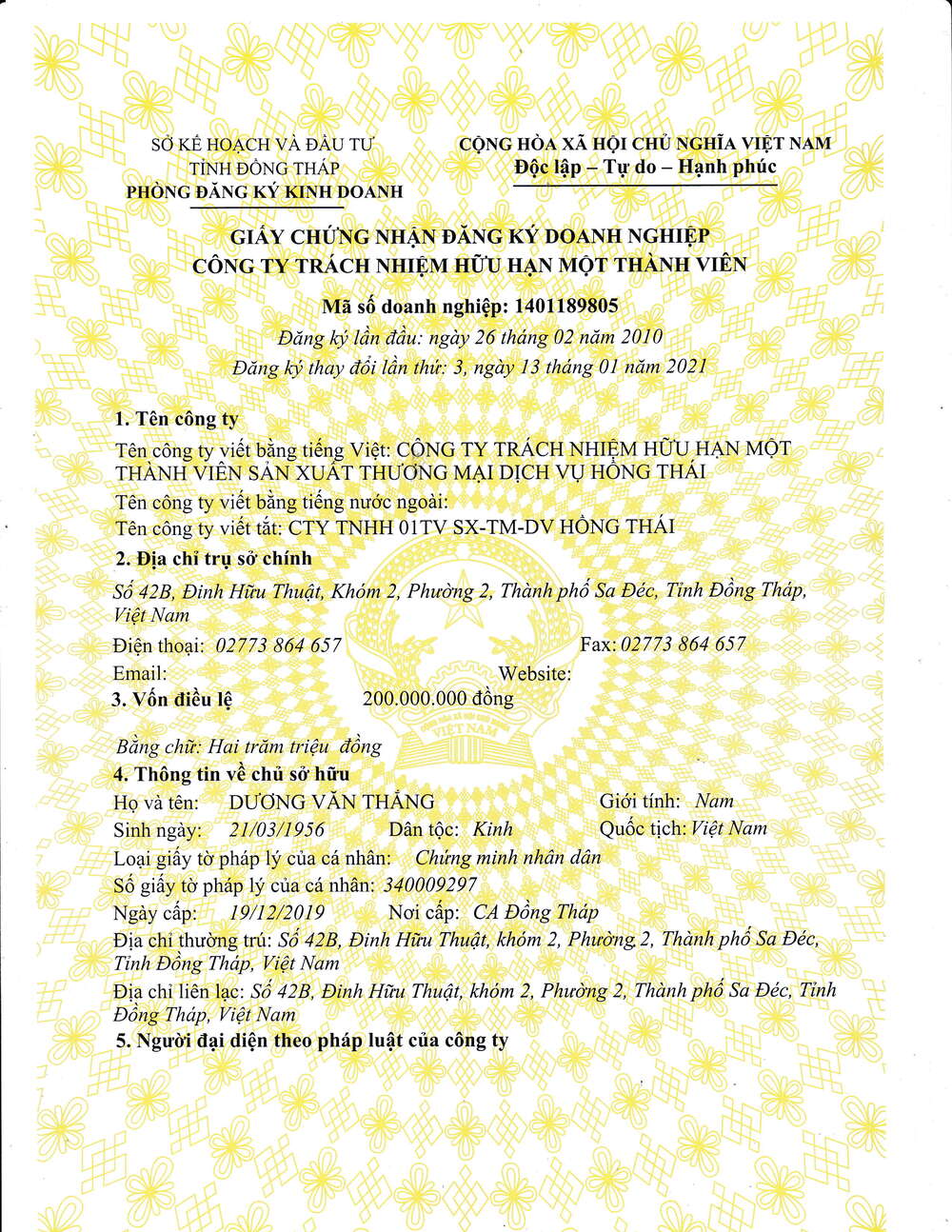 Từ những thành tựu tốt đẹp đã đạt được trên, Công ty TNHH MTV SX TM DV Hồng Thái rất mong nhận được nhiều hơn sự quan tâm, ủng hộ cùng các chương trình hợp tác kinh doanh – sản xuất của toàn thể quý khách hàng trong nước và quốc tế. Và để đáp lại sự ủng hộ đó, chúng tôi sẽ luôn dành những ưu đãi tốt nhất để quý khách hàng có điều kiện hợp tác bằng nhiều hình thức khác nhau, tạo dựng môi trường làm ăn có hiệu quả và ổn định lâu dài, cùng nhau khai thác tối đa tiềm năng lẫn khả năng của vùng đặc sản Sa đéc - Đồng Tháp, khu vực Đồng bằng sông Cửu Long, Việt Nam.