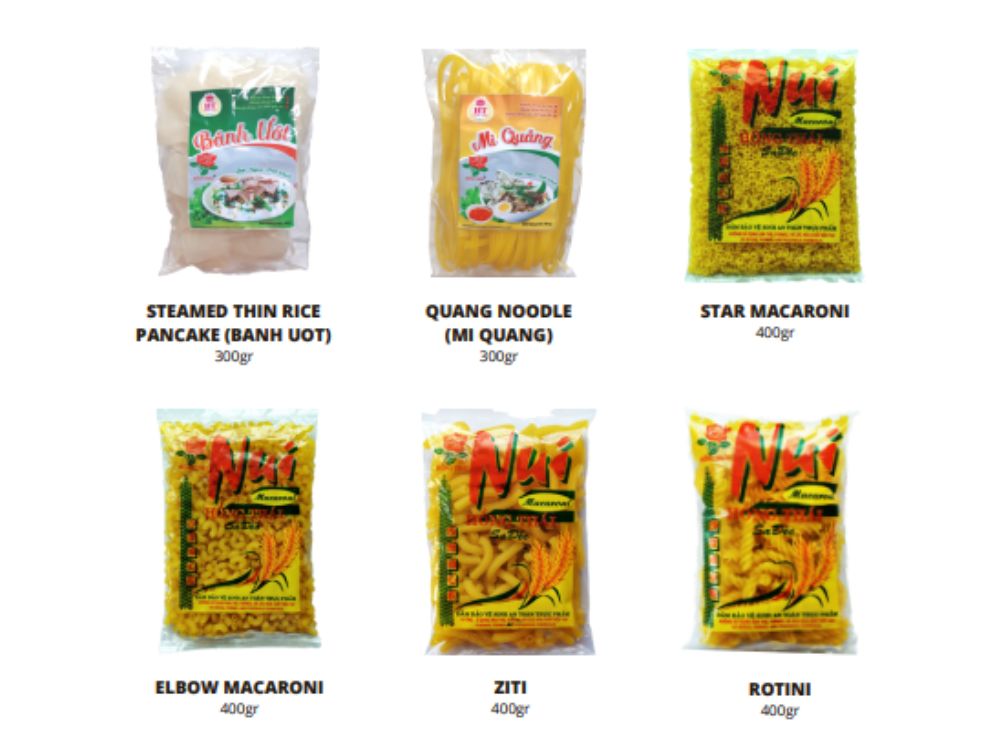 Ngoài ra, chúng tôi cũng kinh doanh một số sản phẩm như: bánh hỏi, mì Quảng, bánh ướt, miến, nui,.. tất cả những sản phẩm trên đã quá quen thuộc với ẩm thực của người Việt bởi sự ngon miệng, với việc cung cấp các sản phẩm từ lúa gạo này Hồng Thái mong muốn đem đến sự tiện lợi cho người tiêu dùng trong việc chế biến món ăn một cách dễ dàng và thưởng thức các món ăn với hương vị thơm ngon nhất để có thể làm hài lòng các thực khách khó tính.