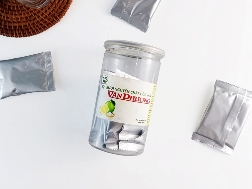 Bột bưởi nguyên chất hòa tan có chứa nhiều chất xơ, vitamin C, chất chống oxy hóa và các hoạt chất khác có lợi cho cơ thể là một sản phẩm an toàn, thiên nhiên và hiệu quả, được nhiều người tin dùng.