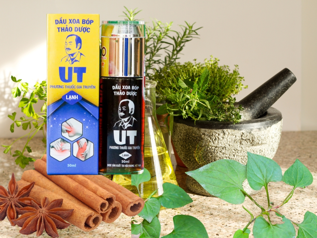 Dầu Xoa Bóp Thảo Dược UT (Lạnh) - Phương thuốc gia truyền, được chiết xuất từ các loại thảo dược thiên nhiên giúp lưu thông khí huyết, làm dịu cơn đau một cách nhanh chóng, hiệu quả.