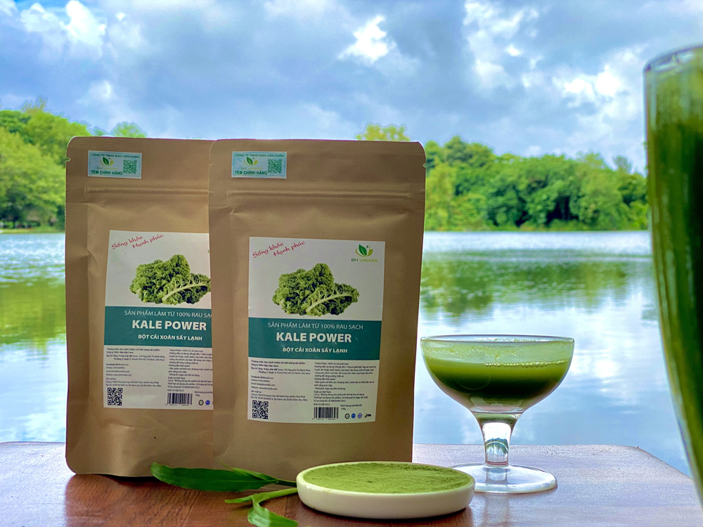 Bột cải xoăn sấy lạnh Kale Power là một loại bột được sản xuất từ 100 rau sạch an toàn và thân thiện với môi trường ra đời bởi Công Ty TNHH Bảo Hân Fram