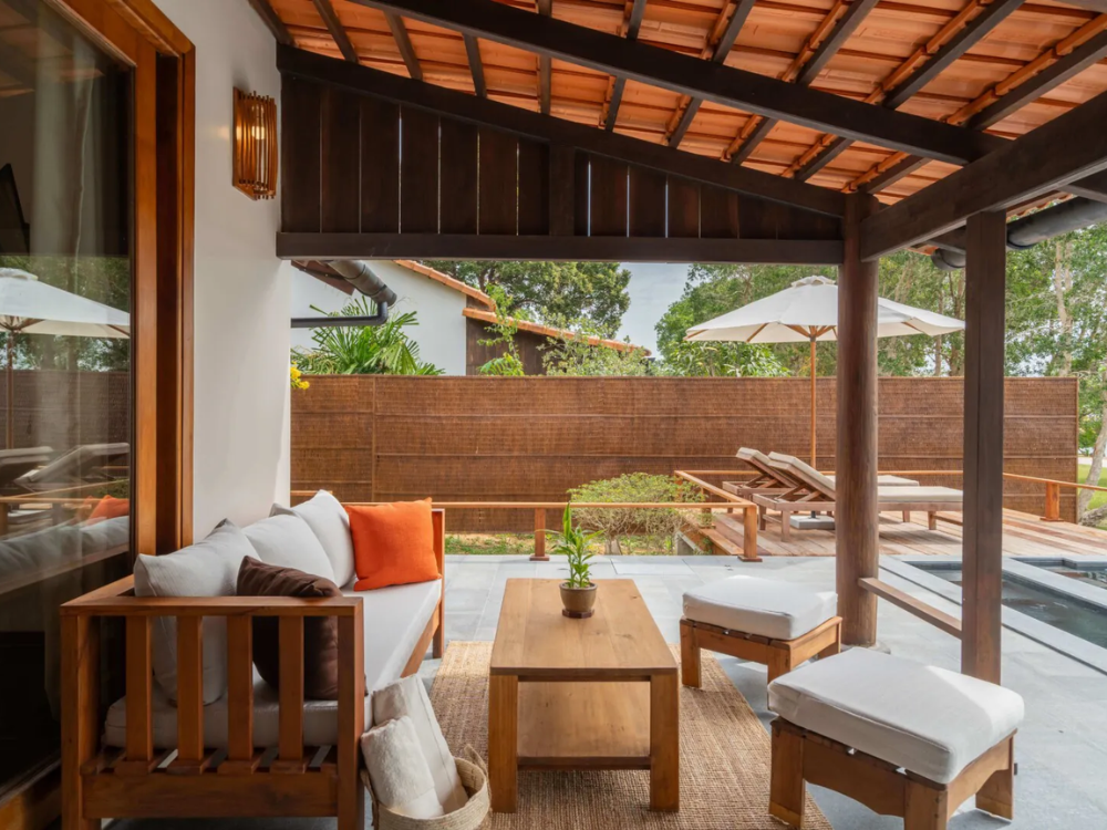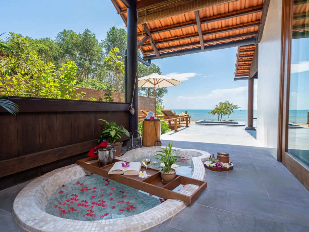 Biệt thự Beachfront Pool Villa là thiên đường nghỉ dưỡng tôn vinh nghệ thuật sống "xa hoa bình dị" và nét đẹp thiên nhiên hòa quyện hoàn hảo. Chỉ cách bãi biển riêng, nơi những con sóng vỗ nhẹ nhàng vài bước chân, mỗi biệt thự mang đến không gian lưu trú rộng lớn thoải mái, với tầm nhìn bao quát ôm trọn đại dương nguyên sơ, lại khiêm tốn nép mình dưới những tán cây hồng sim rợp bóng. Biệt thự sở hữu hồ bơi riêng tư, được lót sàn bằng đá granit cao cấp, mặt nước lấp lánh dưới ánh mặt trời miền nhiệt đới cùng khoảng sân hiên thoáng đãng, được thiết kế chu đáo dành riêng cho những phút giây yên tĩnh, thư giãn trọn vẹn.