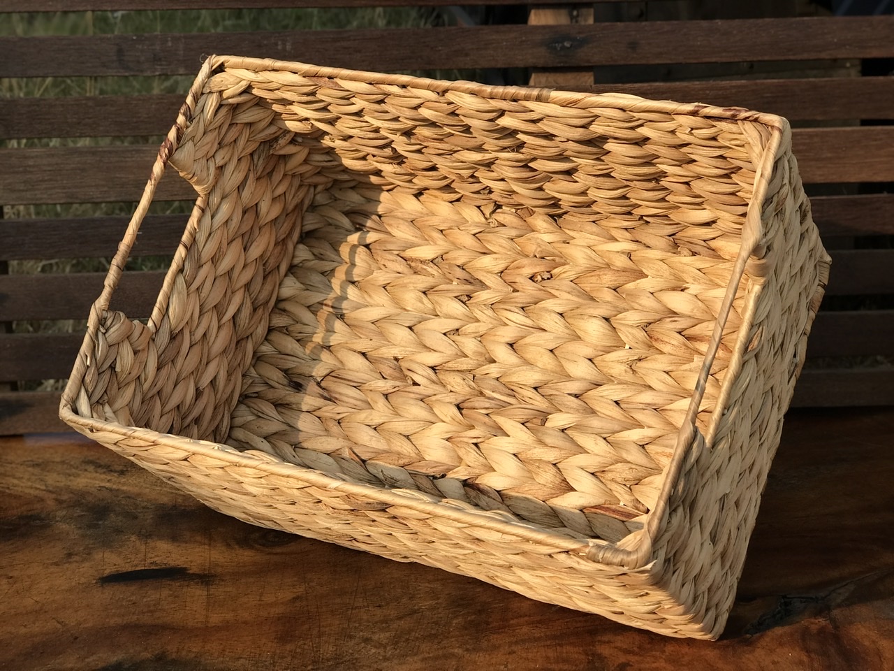 Giỏ được làm từ cây bàng cói và lục bình tự nhiên Được đan thủ công từ những nghệ nhân trong vùng