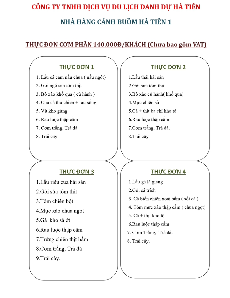 Để xem chi tiết Thực đơn cơm phần của Nhà hàng, vui lòng truy cập vào đường link bên dưới...