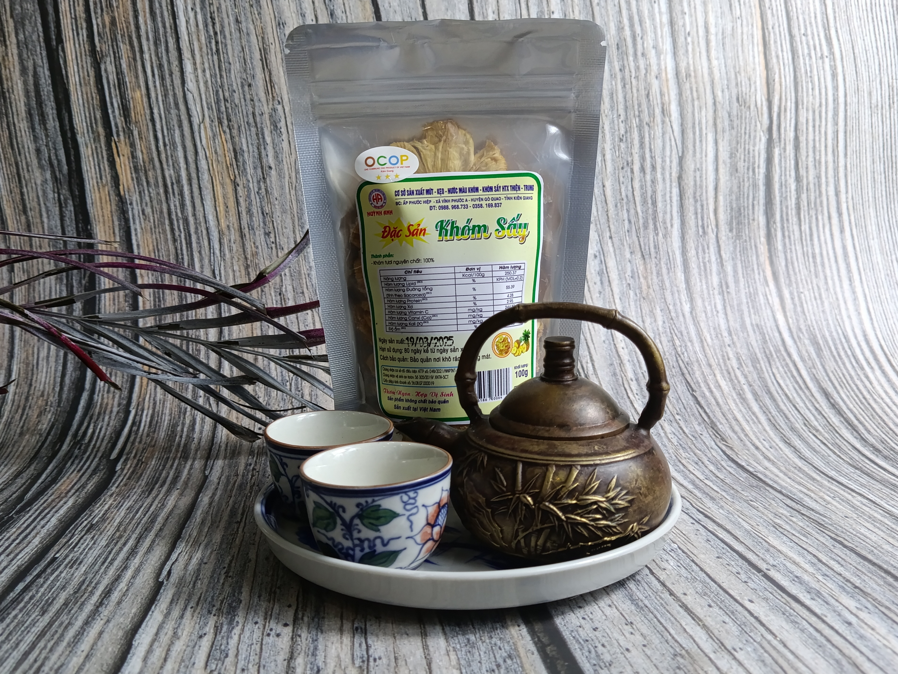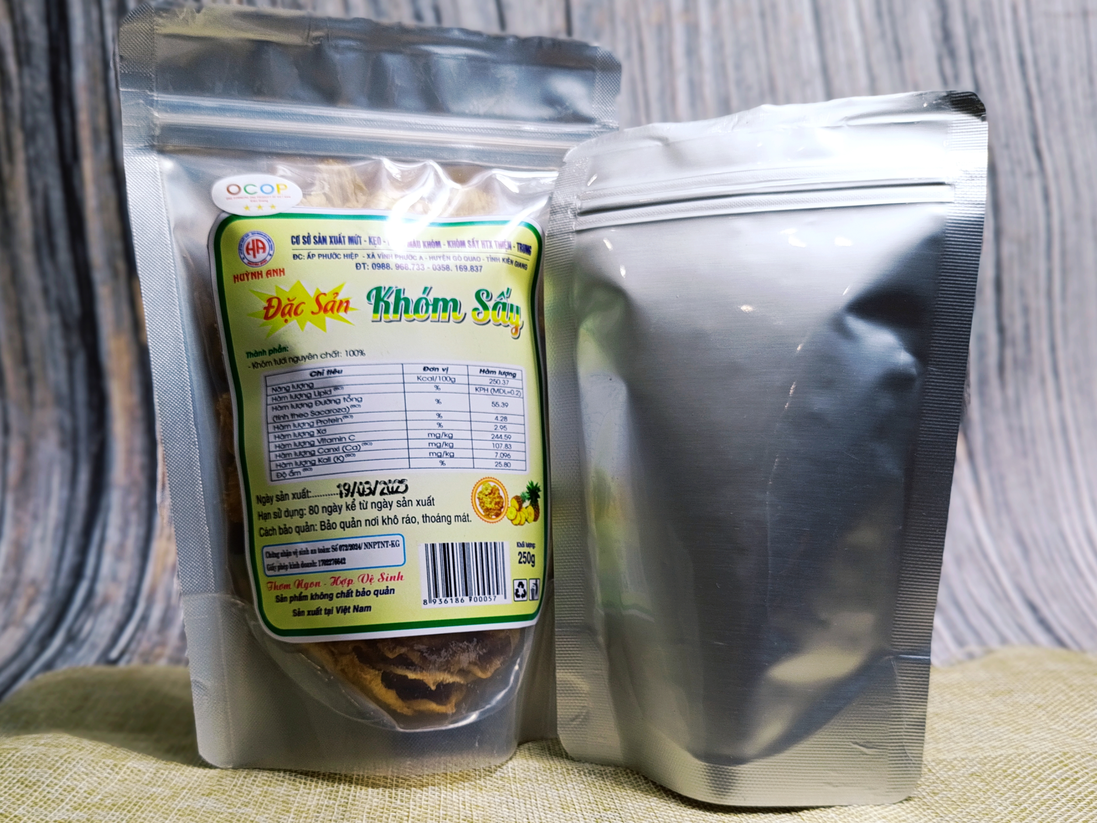 Khóm sấy là một sản phẩm ăn vặt tốt cho sức khỏe, với 100% thành phần là khóm tự nhiên, không chứa chất phụ gia, an toàn tuyệt đối cho người sử dụng.