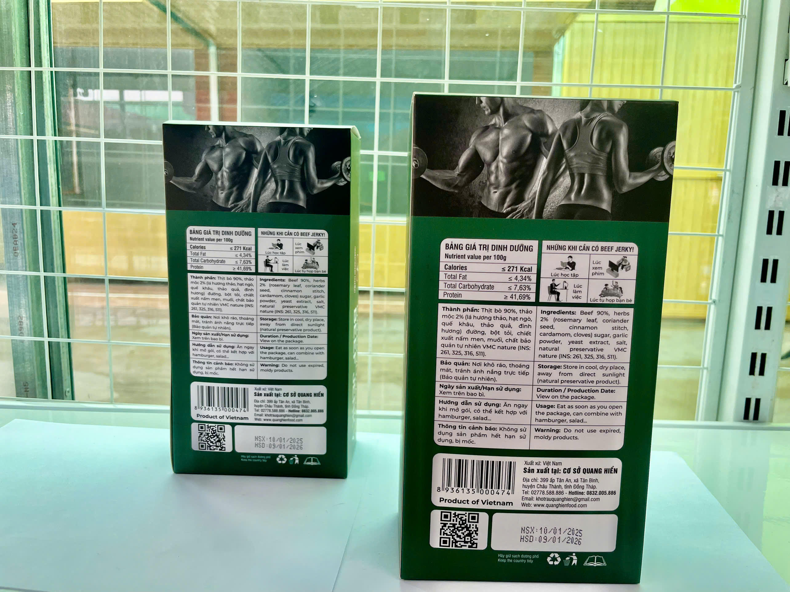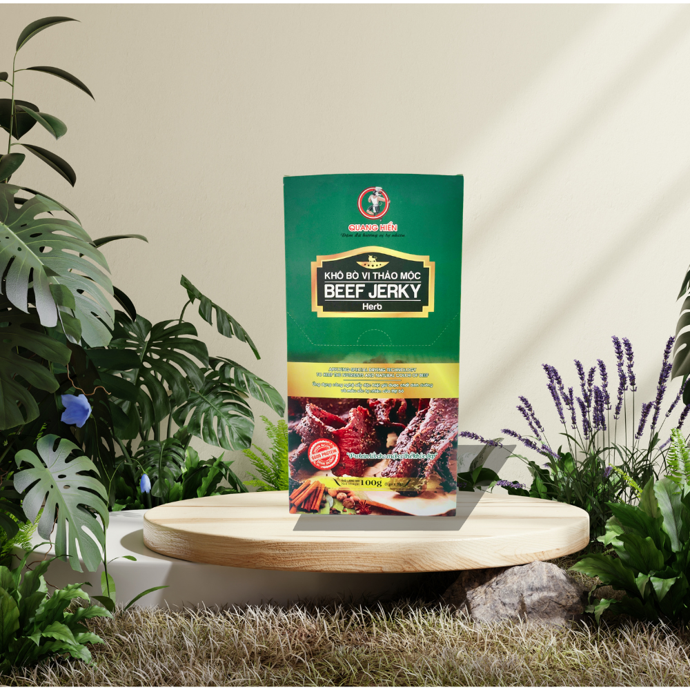 Khô Bò Vị Thảo Mộc Quang Hiển là sự kết hợp hoàn hảo giữa thịt bò tươi ngon và các loại thảo mộc tự nhiên, mang đến hương vị độc đáo, thanh nhẹ và tốt cho sức khỏe. Nhờ ứng dụng công nghệ sấy hiện đại, sản phẩm giữ nguyên độ dai mềm, màu sắc tự nhiên và hàm lượng dinh dưỡng cao.