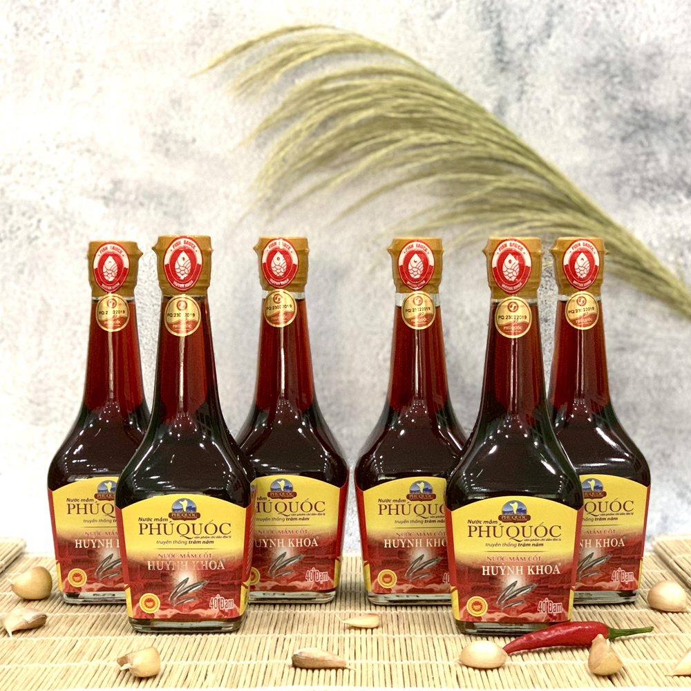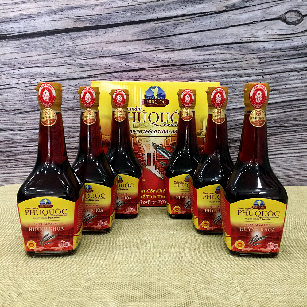 Nước Mắm Cốt Nhĩ Truyền Thống CDĐL Phú Quốc Huỳnh Khoa 40 độ đạm (Nguyên Chất) - Chai 200 ml - Hộp 6 Chai