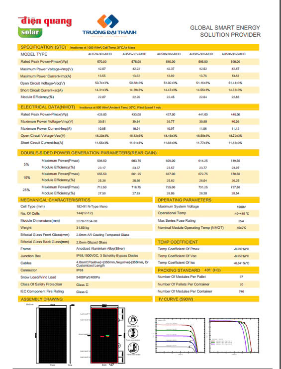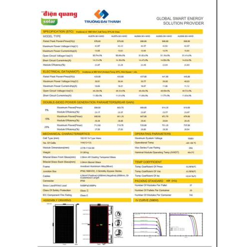 Tấm module năng lượng mặt trời Điện Quang AUSTA N-Type 590wp